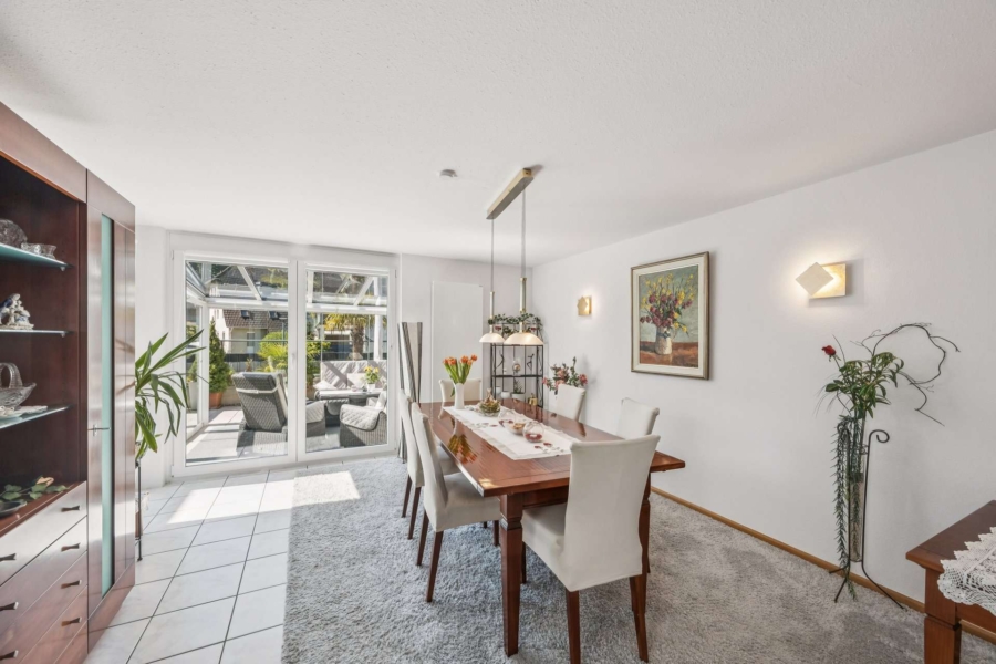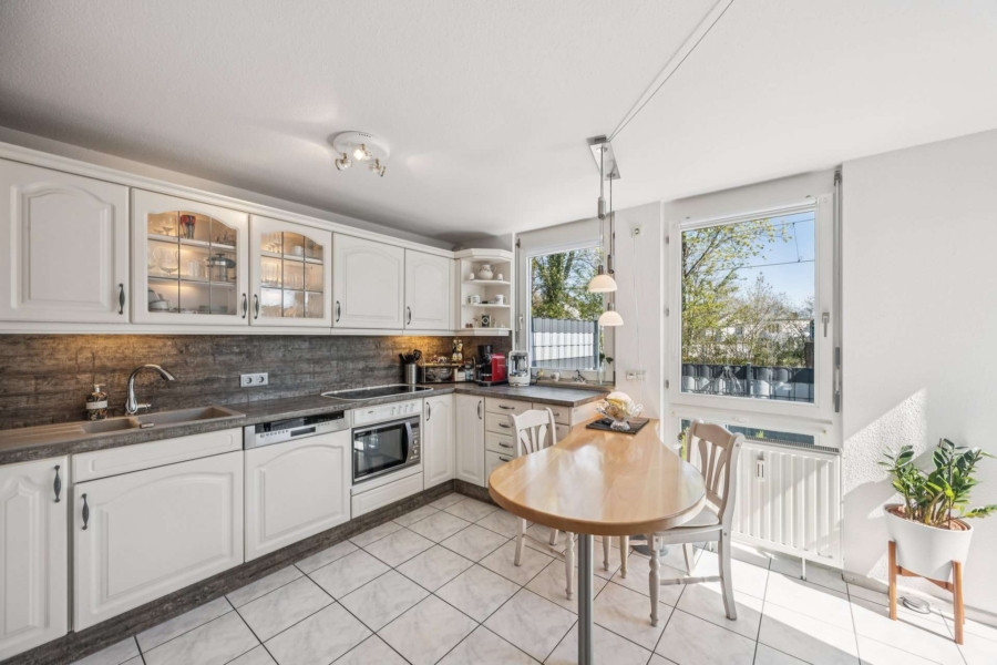 Im Erdgeschoss bildet der lichtdurchflutete Wohnbereich das Herzstück der Immobilie. Eine großzügige Wohnküche mit gepflegter Einbauküche geht harmonisch in den hellen Wohn- und Essbereich über und kann bei Bedarf durch eine Schiebetüre separiert werden.